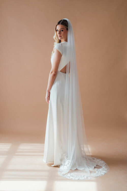 An ivory veil is a classic colour choice for brides who are looking for a veil to compliment their ivory wedding dress. Our ivory wedding veils are handmade to order in the UK using the finest fabrics and come in a choice of lengths.